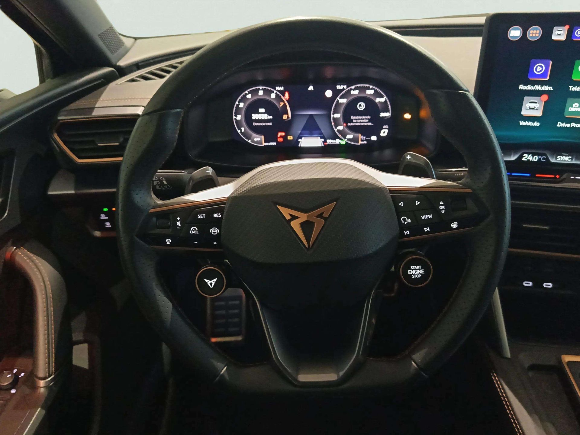 - * Volante multi-función térmico de aluminio y cuero ajustable en altura y en profundidad controles táctiles